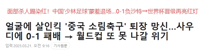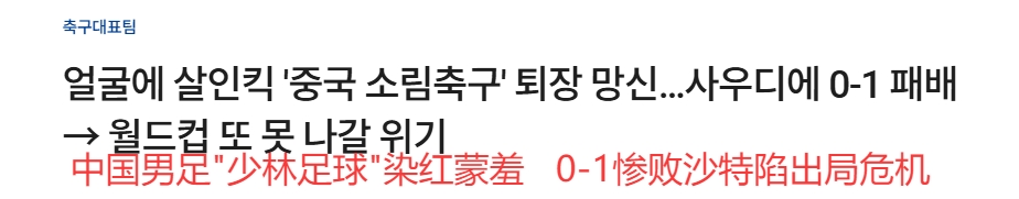 韓媒大面積群嘲國足:殺人飛腿、少林足球、蒙羞退場、世界杯夢碎