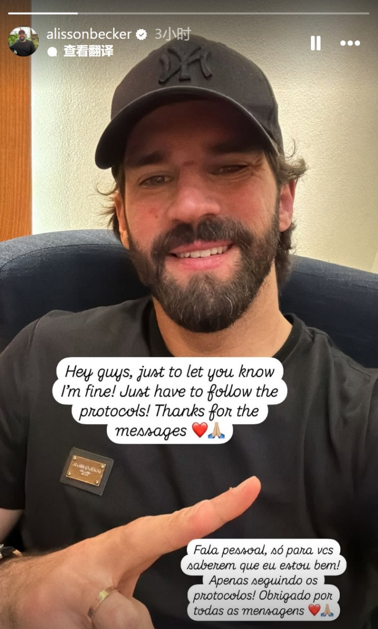 3月22日訊 世預(yù)賽南美區(qū)第13輪,巴西2-1擊敗哥倫比亞。阿利森在和桑切斯相撞后被換下,并退出了本期國(guó)家隊(duì)。隨后,阿利森更新社媒,向球迷們報(bào)平安。