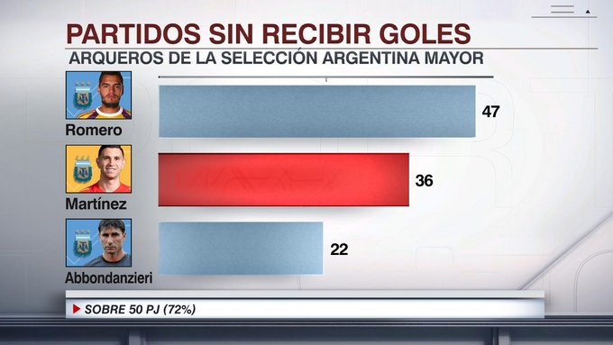 統(tǒng)計(jì)表明,馬丁內(nèi)斯已經(jīng)36次為阿根廷零封對手,排名第二,僅次47次的羅梅羅。