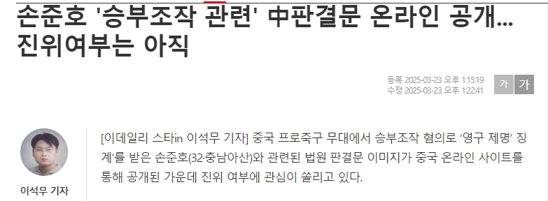 edaily標(biāo)題:孫準(zhǔn)浩假球案判決書(shū)在網(wǎng)上發(fā)布,真實(shí)性尚不清楚。