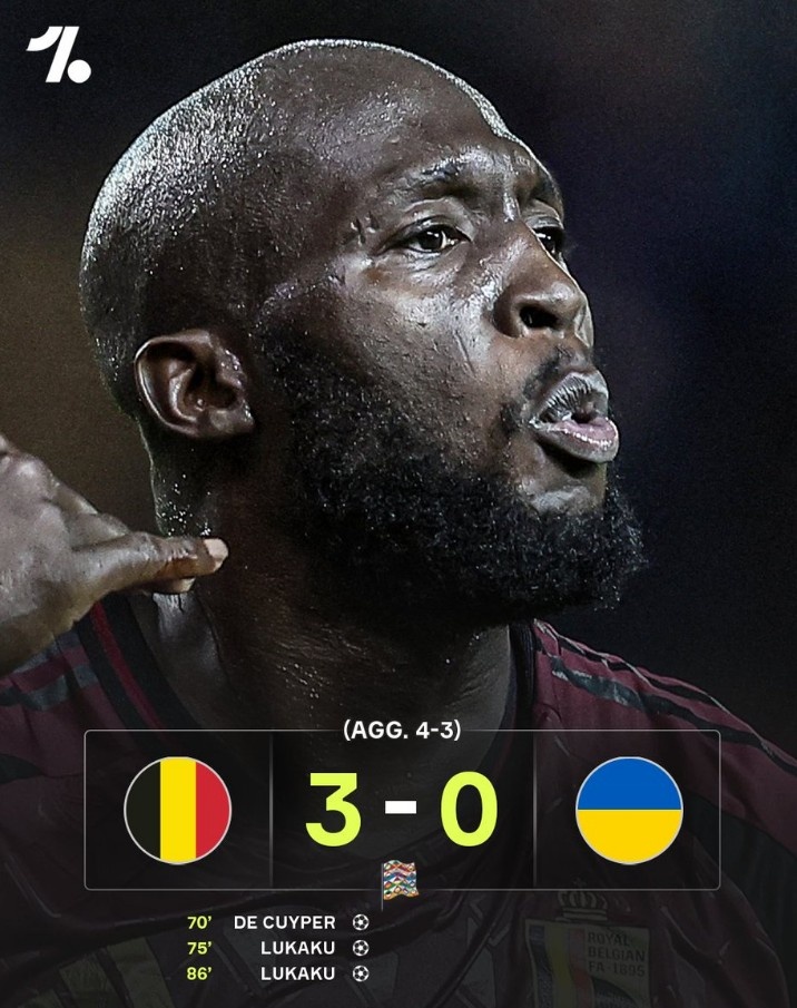 歐國(guó)聯(lián)升級(jí)賽次回合比利時(shí)3-0擊敗烏克蘭,盧卡庫(kù)梅開(kāi)二度
