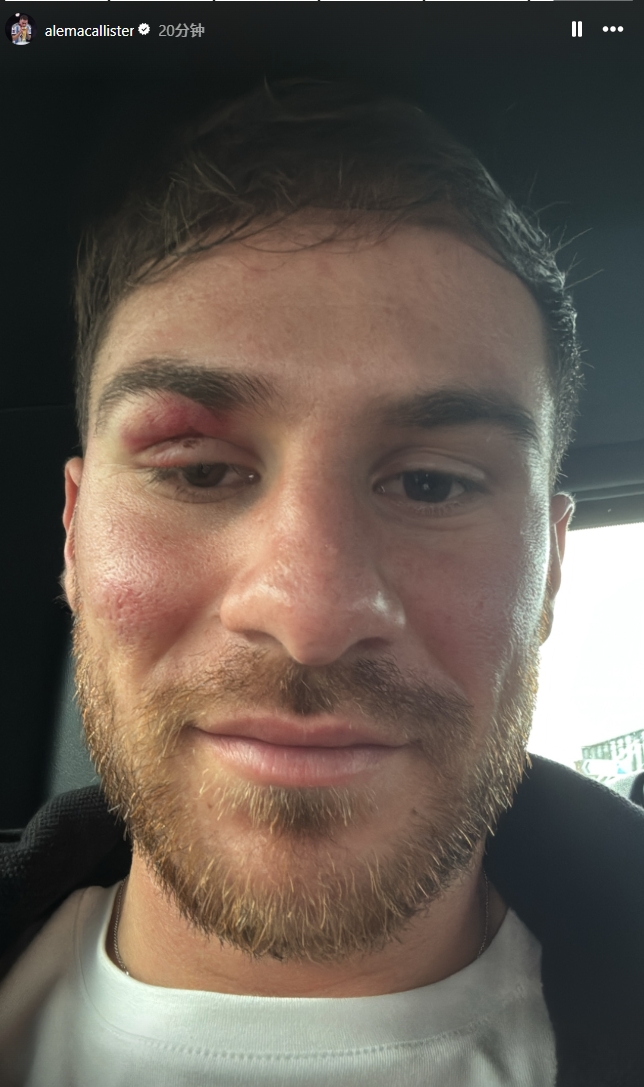 今天麥卡利斯特曬出了自拍,可以清楚看到他臉上的創(chuàng)傷,但盡管如此,贏球后麥卡利斯特的心情看上去不錯(cuò)。