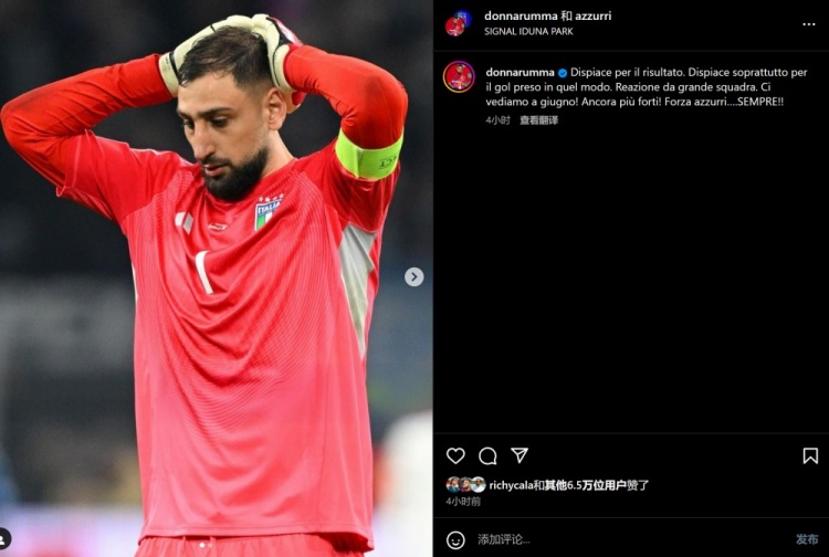 3月24日訊 歐國(guó)聯(lián)1/4決賽次回合,意大利3-3戰(zhàn)平德國(guó),總比分4-5被淘汰。賽后,多納魯馬更新了社媒,就結(jié)果道歉,并鼓舞了士氣。