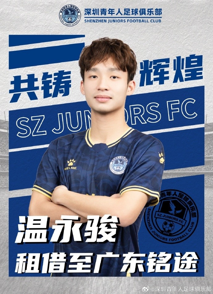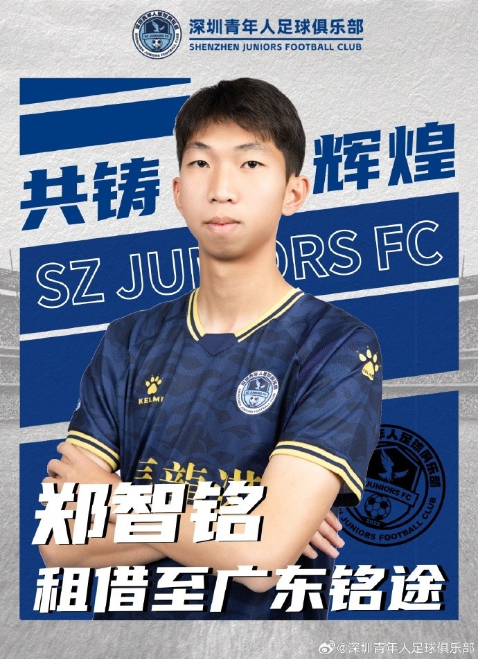 官方:中甲深圳青年人球員鄭智銘、溫永駿,租借加盟廣東銘途