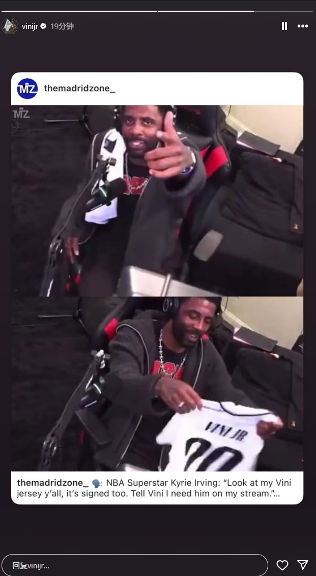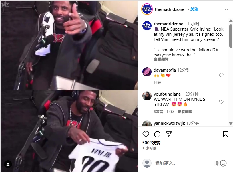 03月24日訊 NBA球星凱里歐文近日開啟直播,期間他為維尼修斯發(fā)聲。