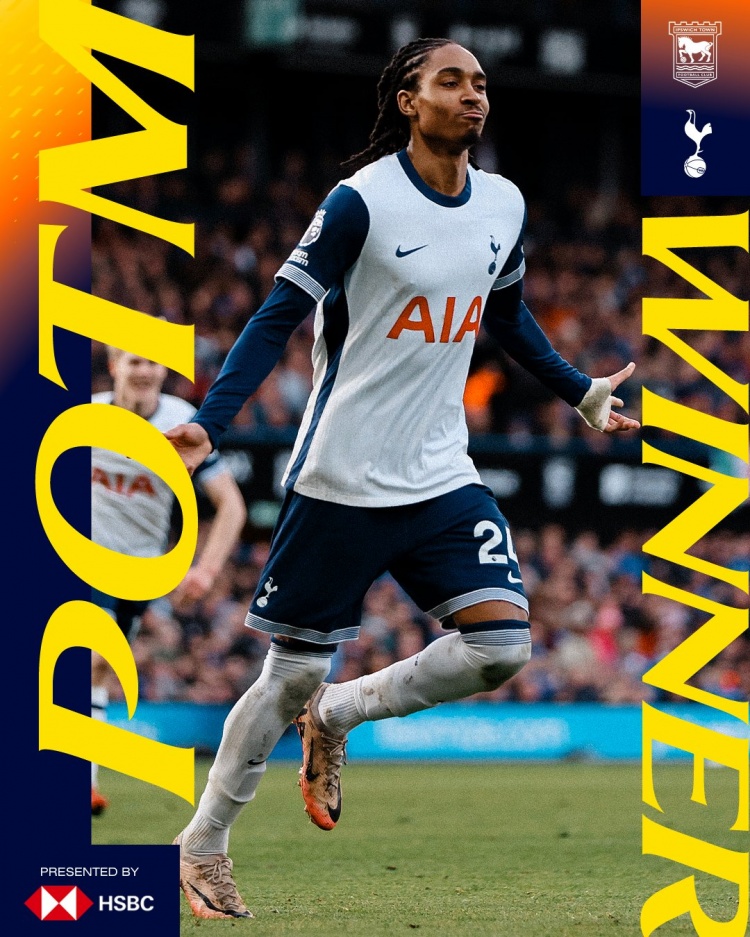 打進1球!熱刺官方:斯賓塞當(dāng)選4-1伊普斯維奇隊內(nèi)最佳球員
