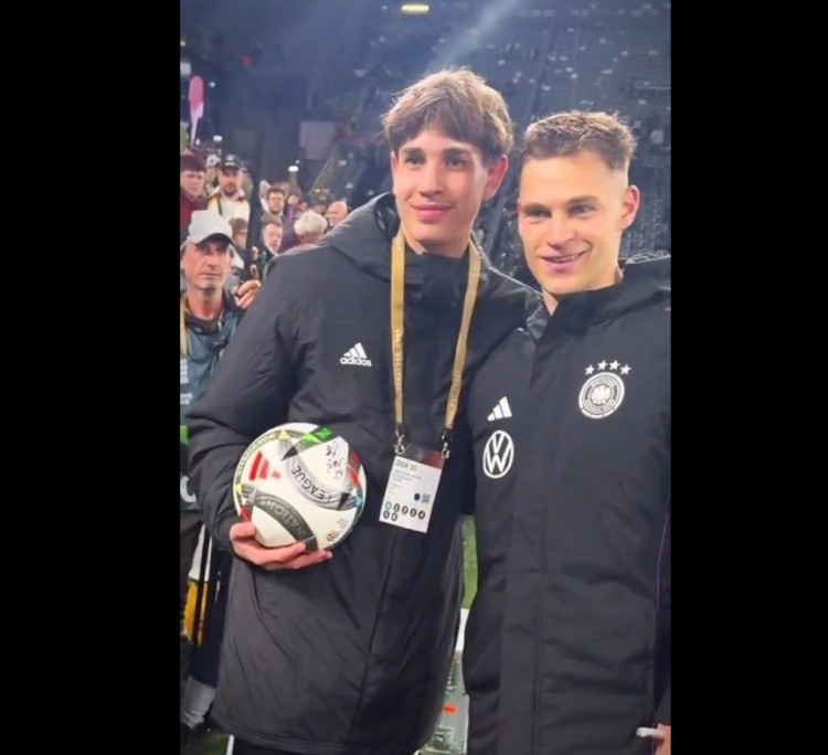 值得一提的是,現(xiàn)場的德國球童第一時(shí)間將足球拋給基米希,在很大程度上幫助實(shí)現(xiàn)了這一進(jìn)球?;紫R苍谫惡笳业竭@位球童,為其送上簽名足球并合影鼓勵(lì)。