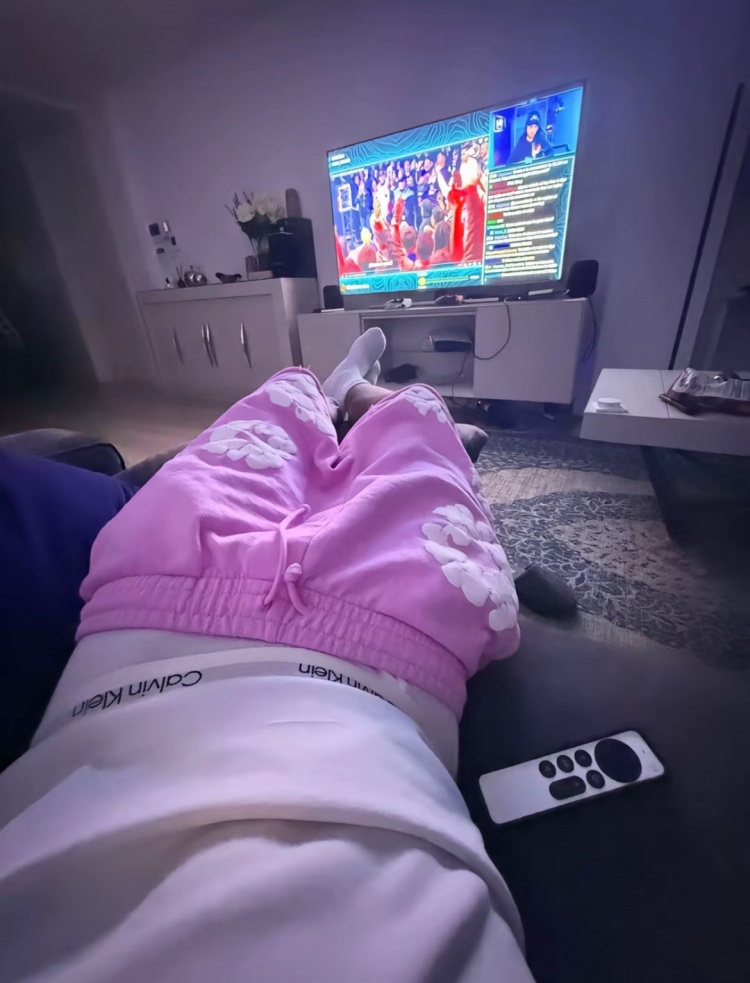 亞馬爾在TikTok曬出一組照片,其中包括一張半脫褲子看電視的照片,繼續(xù)嘲諷范德法特。