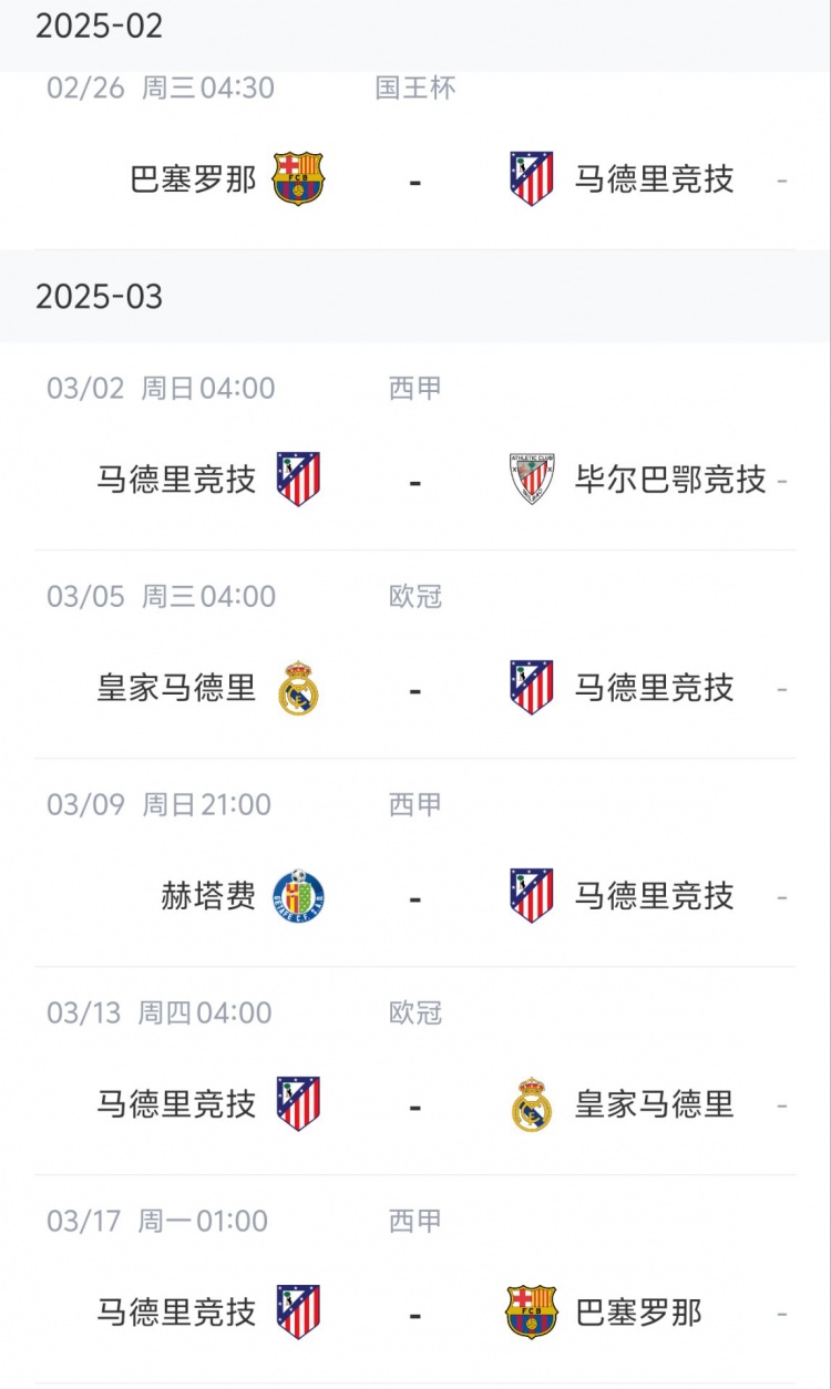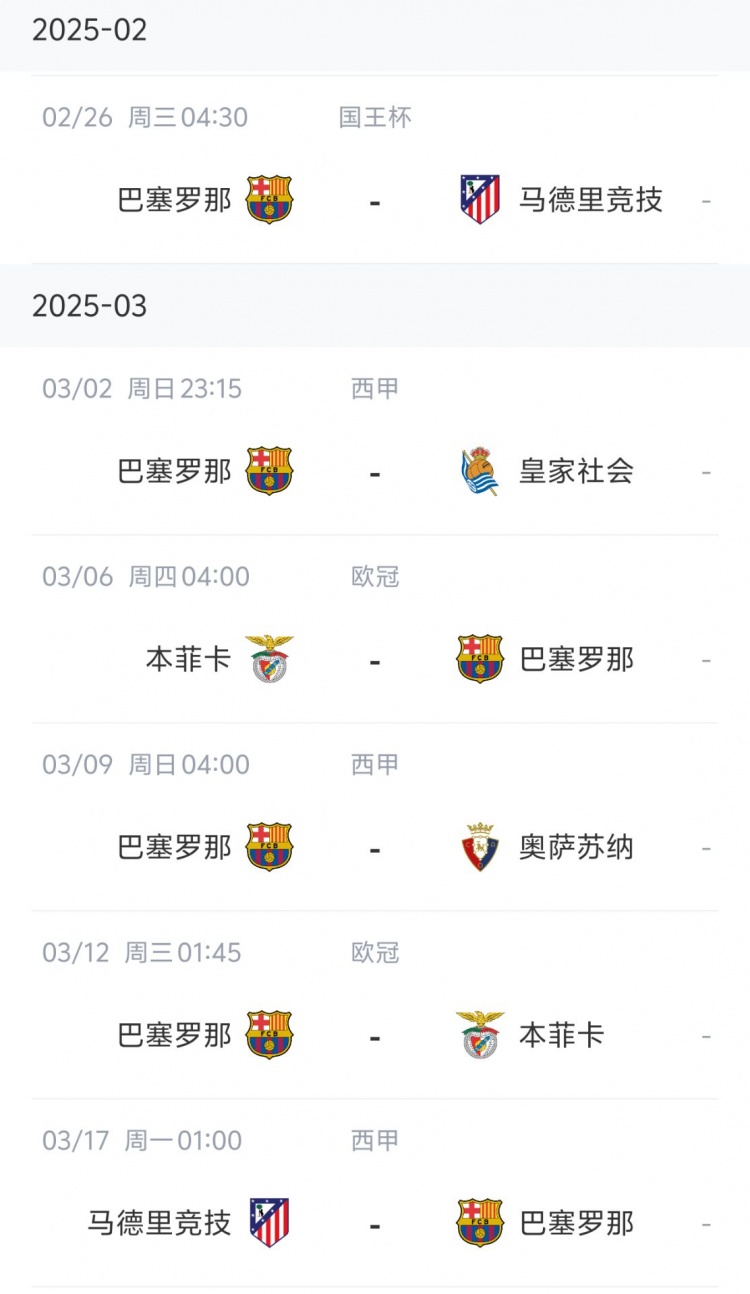 2月24日訊 未來(lái)三周,巴薩、皇馬和馬競(jìng)將迎來(lái)一系列關(guān)鍵賽事?!睹咳阵w育報(bào)》報(bào)道,巴薩的賽程相對(duì)較為有利,六場(chǎng)比賽中將有四場(chǎng)主場(chǎng)作戰(zhàn)。
