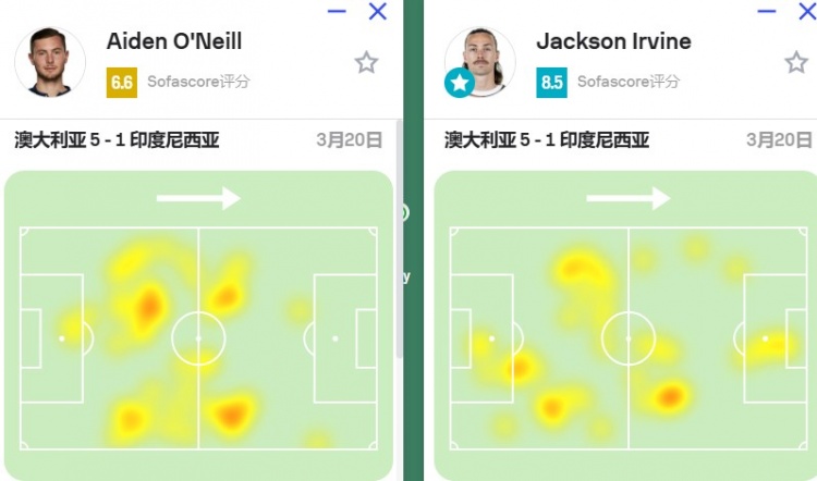 澳大利亞玩的就是效率,控球率、進攻三區(qū)進入次數(shù)比印尼還少,可比分卻是大勝(藍色方為印尼)