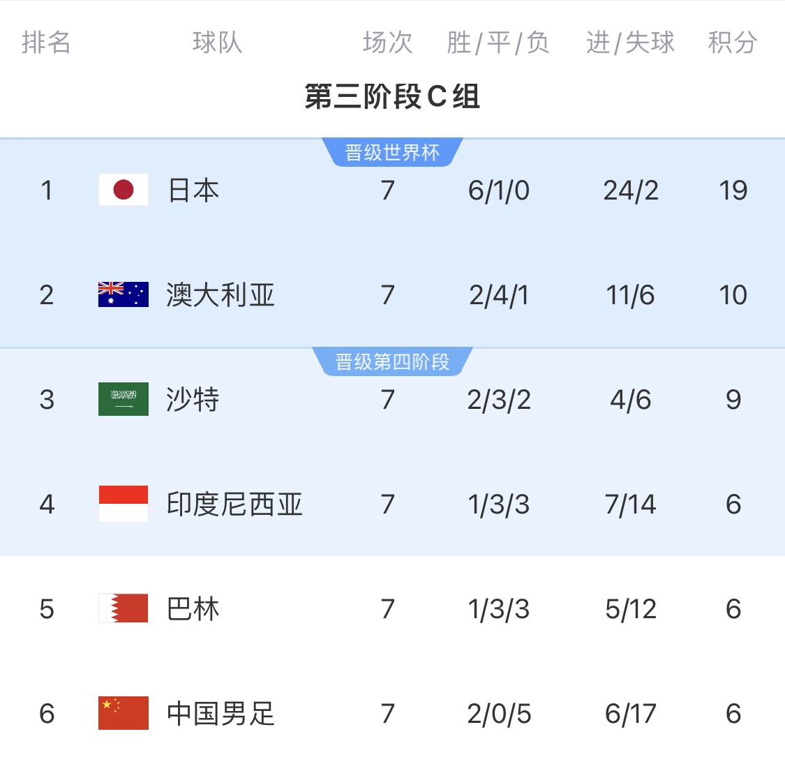 在上輪開打前,澳大利亞雖然排名第2,國足雖然落入到了墊底位置,可是積分差距只有1分(7-6),彼時還有不少球迷幻想著接下來的“奇跡”??墒牵?strong>在0-1輸給沙特后,國足仍舊的墊底,澳洲卻痛擊歸化滿滿的印尼,將自己的分數(shù)優(yōu)勢擴大,保持了晉級的主動權。目前他們仍舊是第2,我們仍舊是墊底,可晉級情況卻“天壤之別”了。