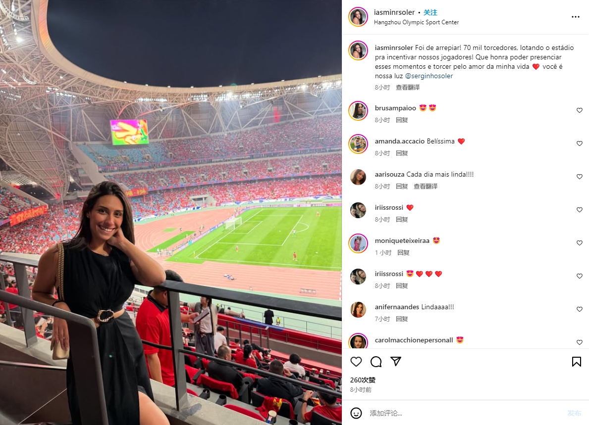 3月26日訊 國足主場與澳大利亞的比賽結(jié)束后,塞爾吉尼奧的妻子更新社媒,曬出了自己在現(xiàn)場觀賽的感受。
