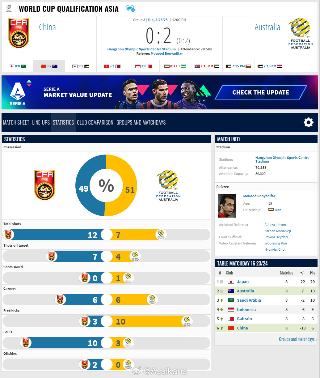 2026年世界杯亞洲區(qū)預(yù)選賽,中國(guó)0-2澳大利亞比賽報(bào)告 ???
