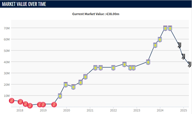03月26日訊 昨日德轉(zhuǎn)更新意甲球員身價,去年夏窗轉(zhuǎn)會至尤文的道格拉斯-路易斯身價再次下跌,僅剩3800萬歐,而他在去年從維拉轉(zhuǎn)會至尤文時,身價還高達7000萬歐。
