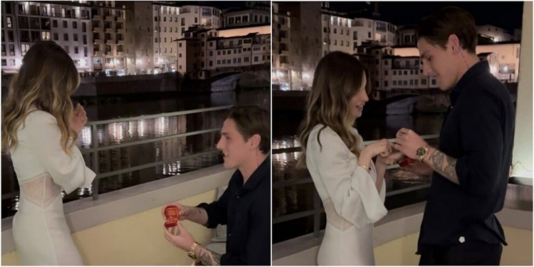 扎尼奧洛在社媒發(fā)布了自己向薩拉求婚的照片,求婚地點是佛羅倫薩著名景點老橋。當時扎尼奧洛單膝下跪,并把戒指戴在薩拉的手指上。扎尼奧洛還配文稱:“現(xiàn)在和永遠?!?/p>