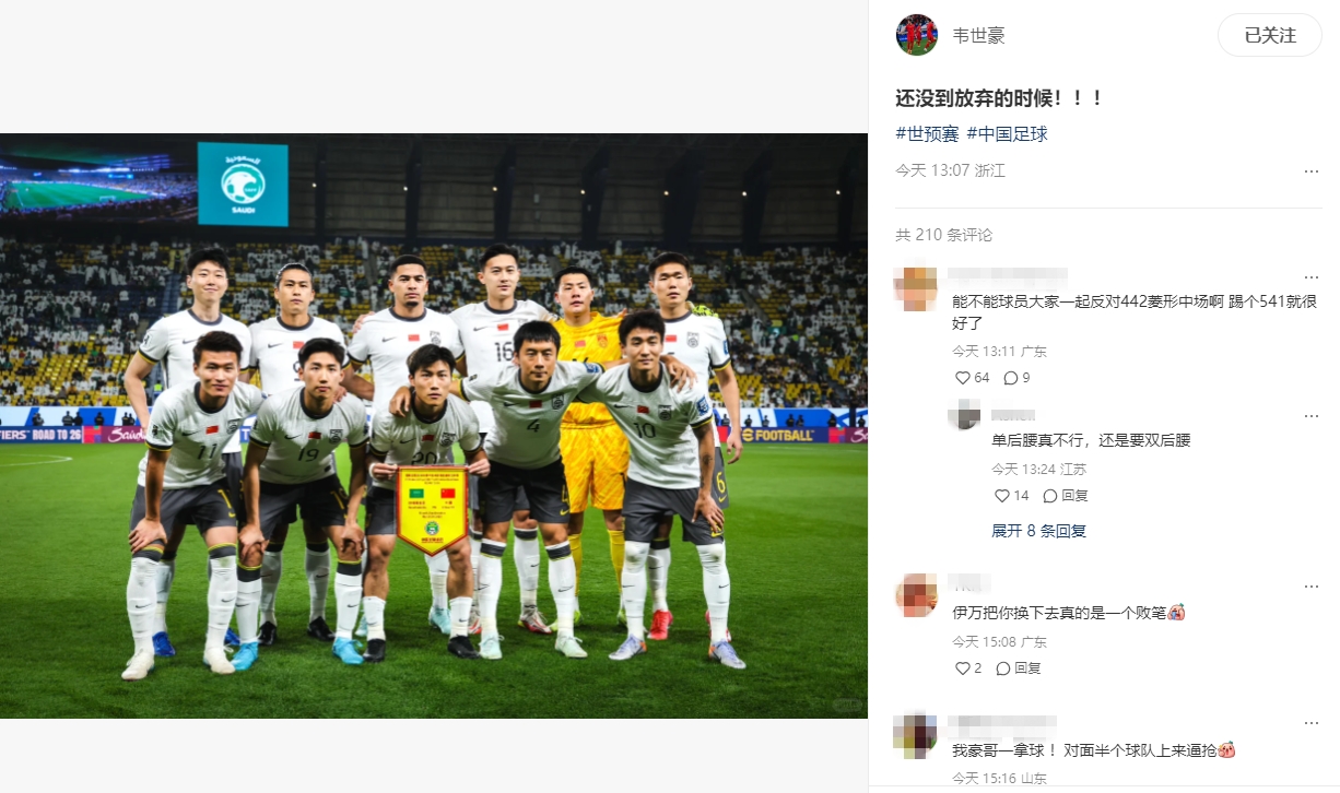 國(guó)足遭遇三連敗,韋世豪:還沒(méi)到放棄的時(shí)候?。?!