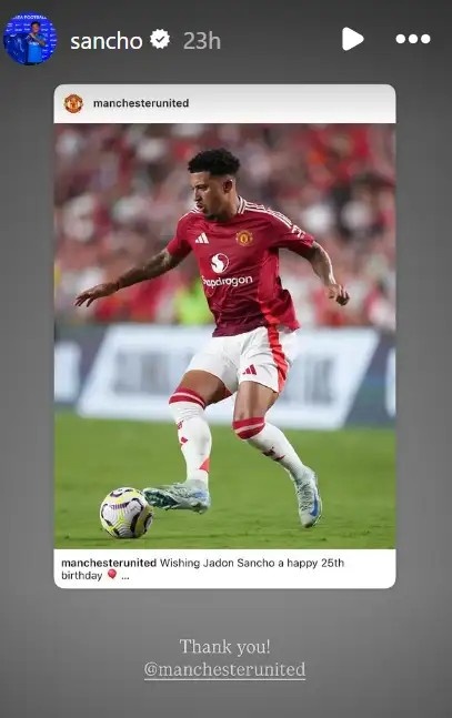 3月27日訊 桑喬最近在Instagram轉(zhuǎn)發(fā)了曼聯(lián)為他慶生的動態(tài),引發(fā)曼聯(lián)球迷熱議。