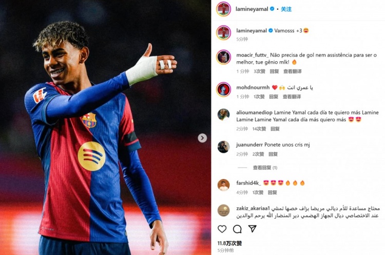 亞馬爾社媒曬照慶祝勝利:讓我們繼續(xù)前進!再添三分!