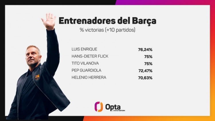 弗里克帶隊(duì)巴薩44場(chǎng)取33勝,勝率75%隊(duì)史僅次恩里克