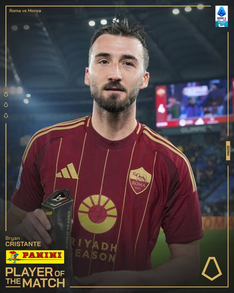 2月25日訊 在羅馬4-0蒙扎的意甲聯(lián)賽中,羅馬中場(chǎng)克里斯坦特當(dāng)選全場(chǎng)最佳球員。