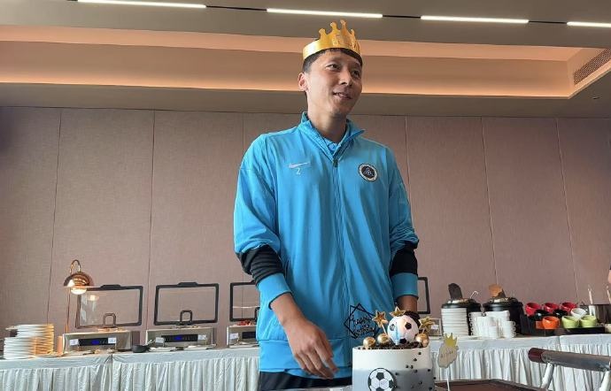 在球隊用餐時,張衛(wèi)頭戴紙皇冠來到了生日蛋糕面前,俱樂部官博曬出照片并祝福他生日快樂。