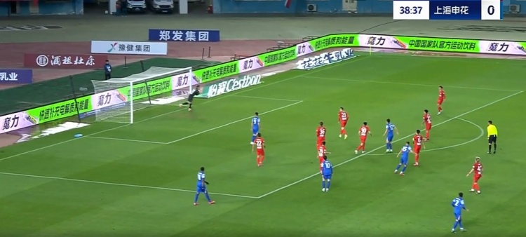 第39分鐘,申花前場連續(xù)的進(jìn)攻,吳曦左側(cè)肋部的凌空抽射被門將抱住↓
