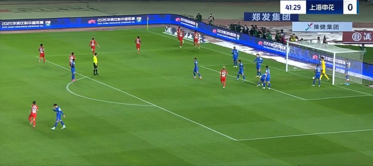 第8分鐘,申花前場右側(cè)定位球開到禁區(qū),路易斯頭球攻門角度太正被門將沒收,同時也是越位在先了↓