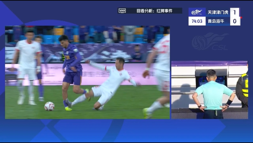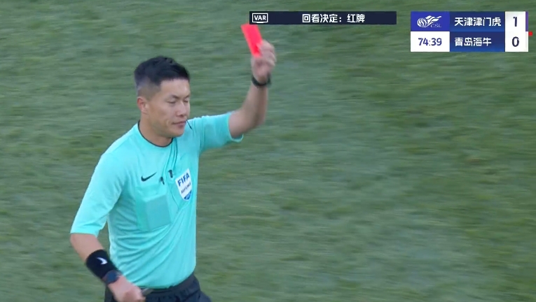 比賽第71分鐘,林創(chuàng)益亮鞋底飛鏟薩爾瓦多支撐腿,裁判先是出示黃牌,后經VAR改判將其直紅罰下,海牛僅剩9人應戰(zhàn)。此前,在上半場第42分鐘,金洋洋已經因鏟球犯規(guī)被直紅罰下。