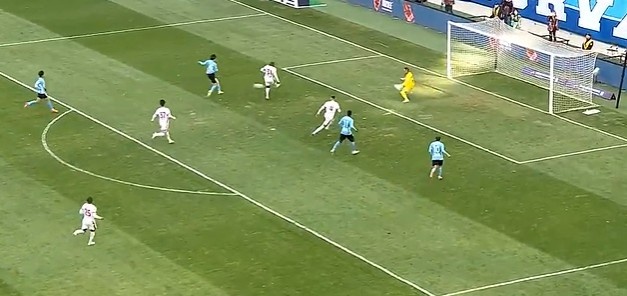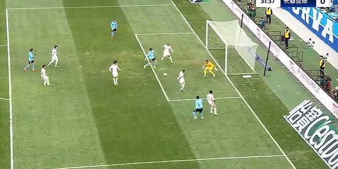 第14分鐘,亞泰左路玄智健下底傳到禁區(qū)徐越門前頭球頂偏了?!?/p>