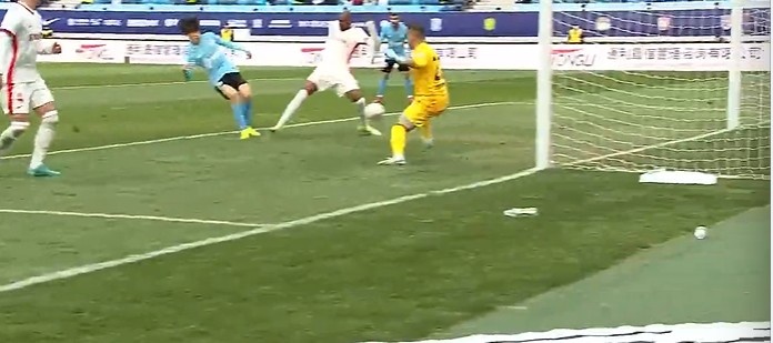 第12分鐘,大連反擊機(jī)會,馬萊萊前場橫傳禁區(qū)左路朱鵬宇推射被防守球員擋出。↓