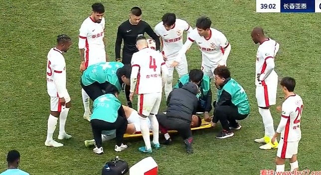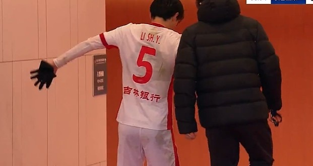 第38分鐘,譚龍拼搶中受傷倒地被擔(dān)架抬出場外,同時李申圓受傷堅(jiān)持不住回更衣室?!?/p>