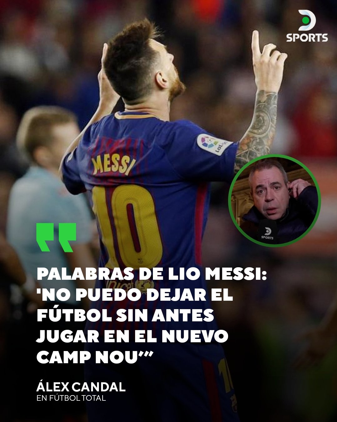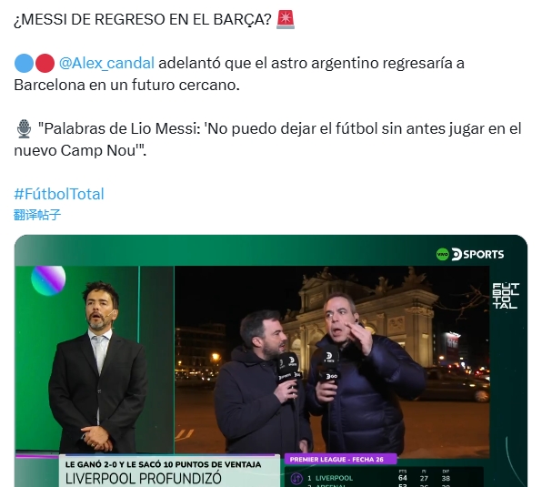 Alex candal透露,梅西將在不久的將來(lái)回到巴塞羅那。他還表示:“梅西的話是‘在新諾坎普球場(chǎng)踢球之前,我不能離開足球。’”