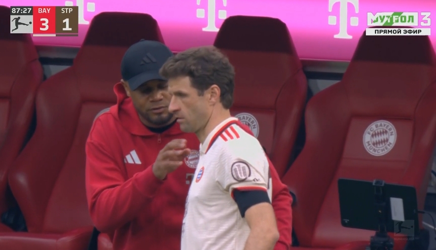 伊藤洋輝是第58分鐘替換格雷羅登場的,拜仁第85分鐘用完了最后的換人名額。孔帕尼也明白這一點,他把穆勒叫到場面交代一下站位。