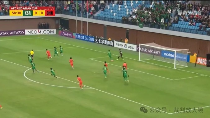視頻中也能看出提前進(jìn)入的沙特隊員將球解圍了,有人說這不是觸球了嗎?其實規(guī)則的提前進(jìn)入的隊員觸球或與對方爭搶球這是一個主語,也就是說以上兩種情況判罰的前提是這兩種行為阻止了對方隊員得分、嘗試進(jìn)球得分或創(chuàng)造進(jìn)球得分情況的任意一種。對提前進(jìn)入的行為應(yīng)采用對守門員提前移動的判罰原則,即:僅在造成阻礙時才被判罰違規(guī)。