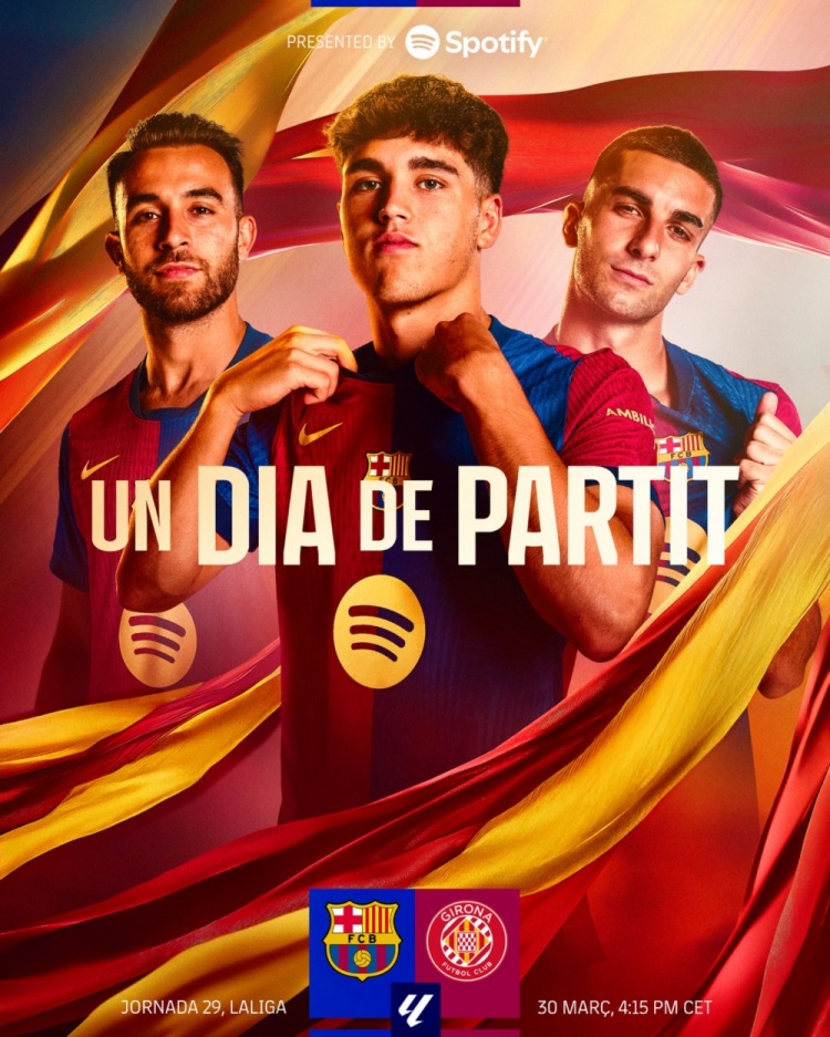 巴薩發(fā)布對陣赫羅納海報:庫巴西、費蘭、埃里克-加西亞出鏡