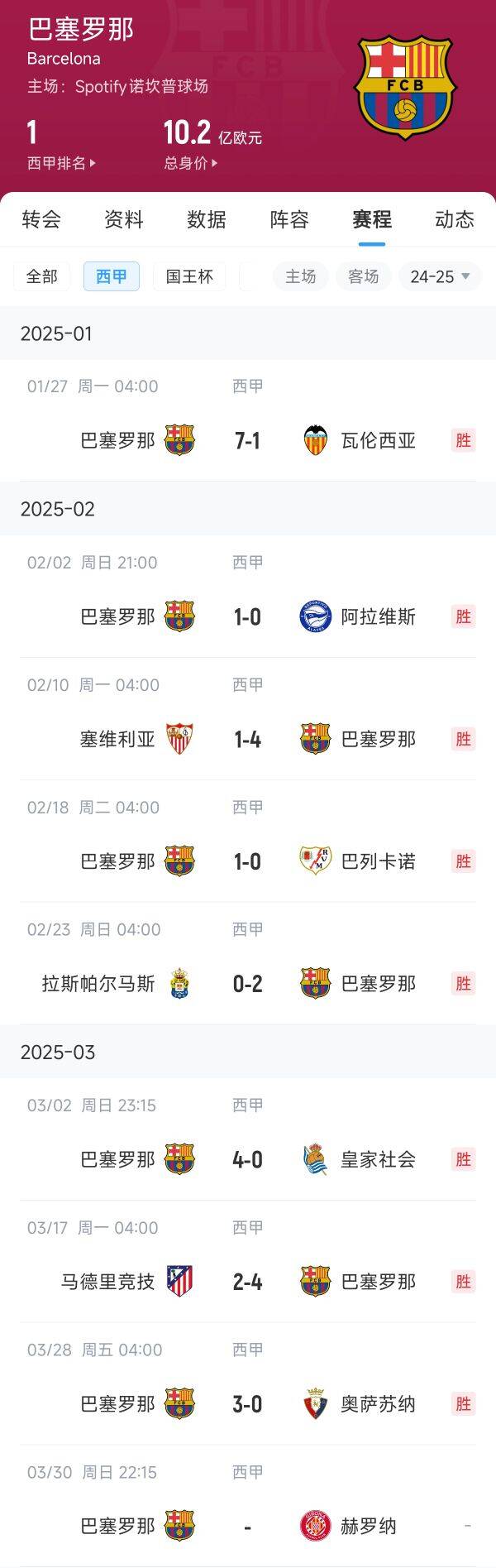 西甲三強狀態(tài)一覽:巴薩8連勝,皇馬8輪4勝近期3連勝,馬競8輪3勝