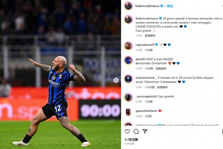 迪馬爾科也在賽后通過社媒曬出了自己的慶祝照并配文:“過去29天我都在想著這樣的時(shí)刻,只想著我如何才能夠幫助到隊(duì)友。保持冷靜,繼續(xù)前進(jìn)????????各位再會(huì)!”