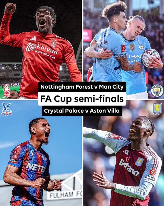 足總杯4強(qiáng)對陣出爐:曼城vs諾丁漢森林,水晶宮vs維拉