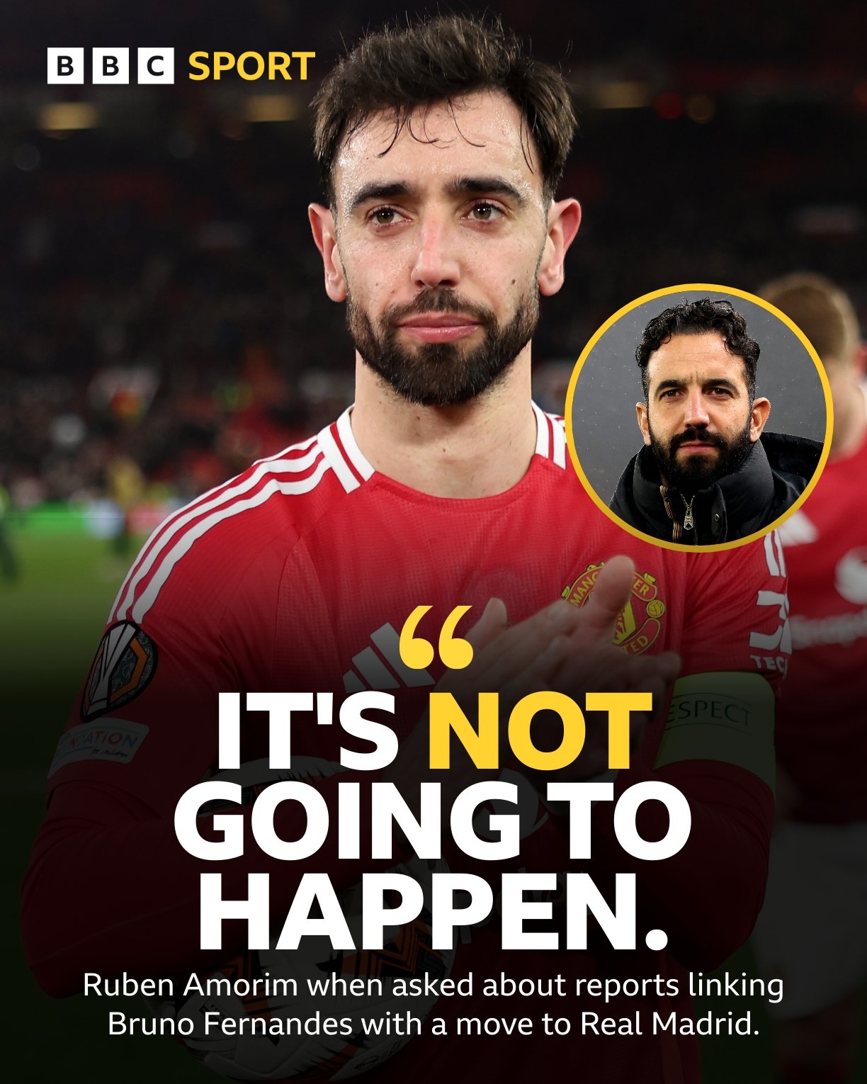 當(dāng)被問(wèn)及周末媒體曝出的“皇馬有意B費(fèi)”消息時(shí),阿莫林回應(yīng)道:“不可能,這不會(huì)發(fā)生。他哪都不會(huì)去,我已經(jīng)告訴過(guò)他了?!?/p>