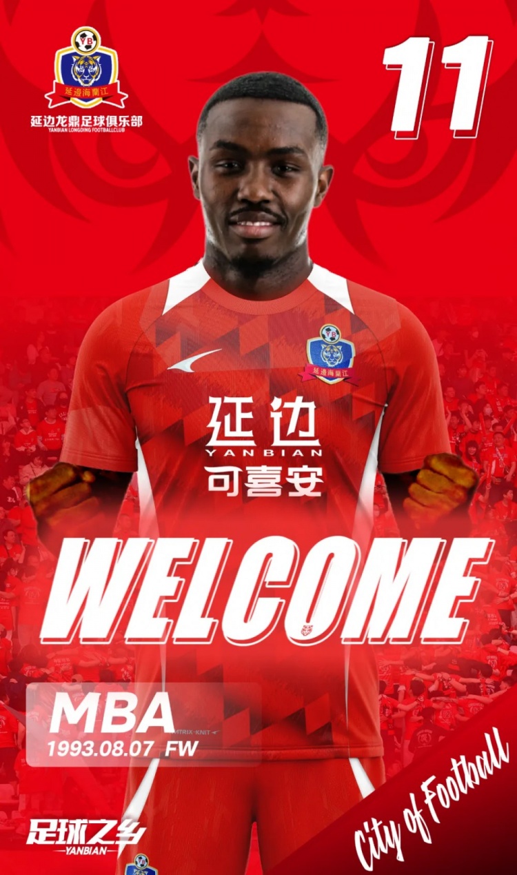 2月25日訊 官方消息,外援翁東-姆巴正式加盟延邊龍鼎足球俱樂部。