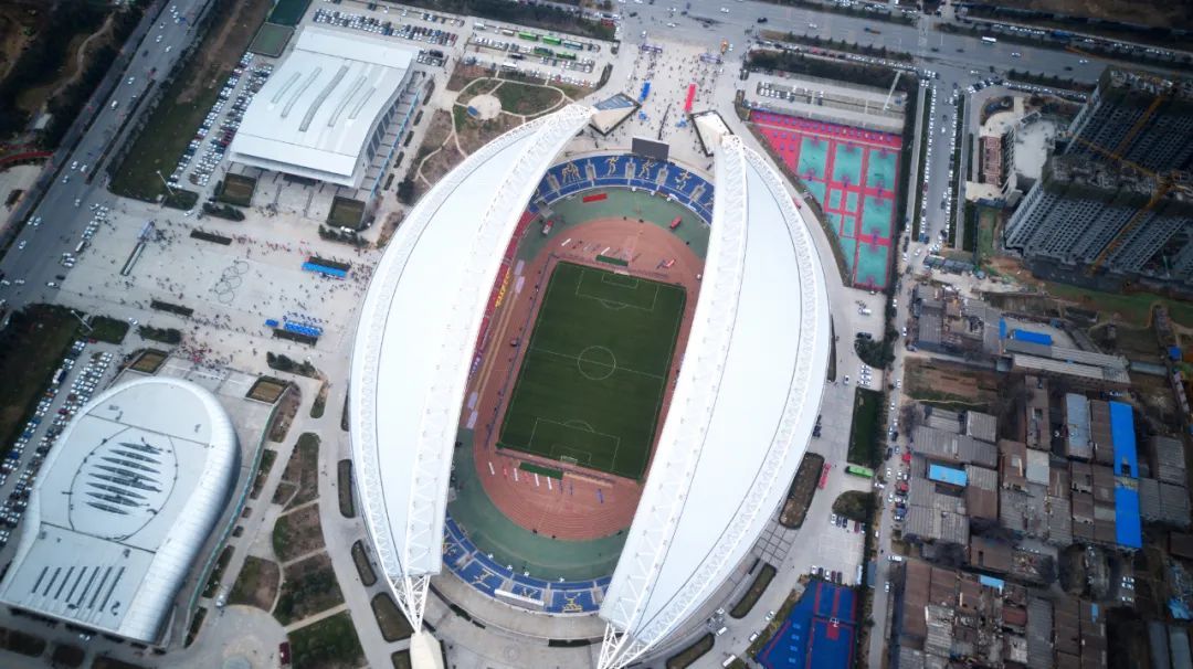 渭南市體育中心體育場位于渭南市渭清路與樂天大街十字西北角,距渭南高鐵站及渭南高速西出口均約兩千米,交通便利,配套齊全。體育場內(nèi)設(shè)觀眾席32000座,東西看臺罩棚由兩扇拱形鋼桁架結(jié)構(gòu)組成,被譽為“西北第一跨”,南北長290米,東西寬217米,高72.9米。場地內(nèi)有標準的天然草坪足球場和9分道的400米標準田徑場,能夠承辦國家級田徑、足球體育比賽和商演會展等活動。為迎接第十八屆省運會,渭南市體育中心迎來了升級改造。