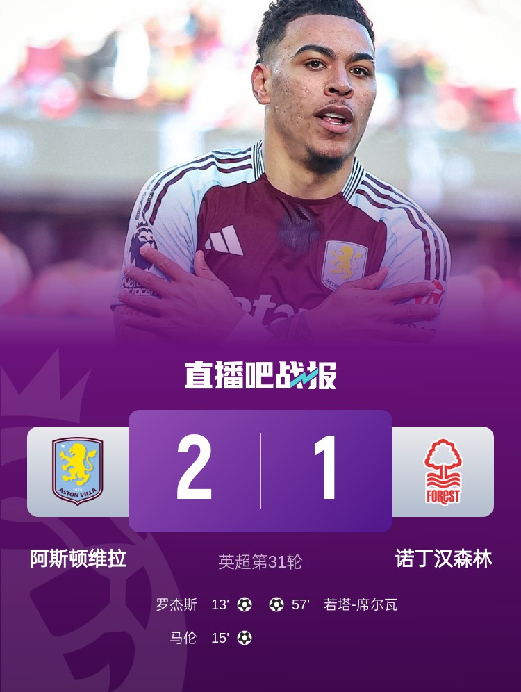 04月06日訊 英超第31輪維拉2-1擊敗森林,近期三線(xiàn)高歌猛進(jìn):足總杯進(jìn)4強(qiáng)、聯(lián)賽3連勝升第6,、歐冠闖入8強(qiáng)。
