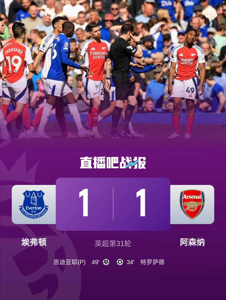 04月06日訊 英超第31輪,阿森納1-1戰(zhàn)平埃弗頓,利物浦在少賽一場(chǎng)的情況11分領(lǐng)跑。