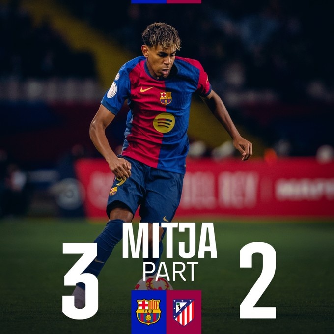 半場結(jié)束,巴薩暫3-2馬競。