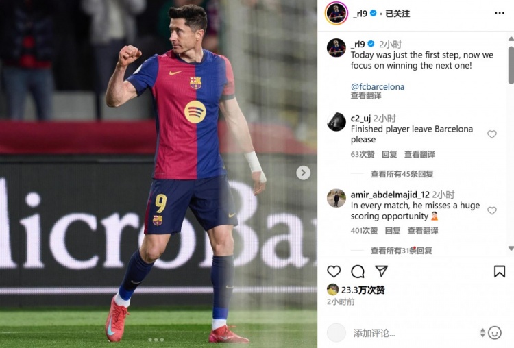 本場比賽萊萬替補(bǔ)登場打進(jìn)一球,賽后他也在個人社媒曬出本場慶祝進(jìn)球照片,配文寫道:“今天的比賽只是第一回合,現(xiàn)在我們專注于贏下下一回合!”