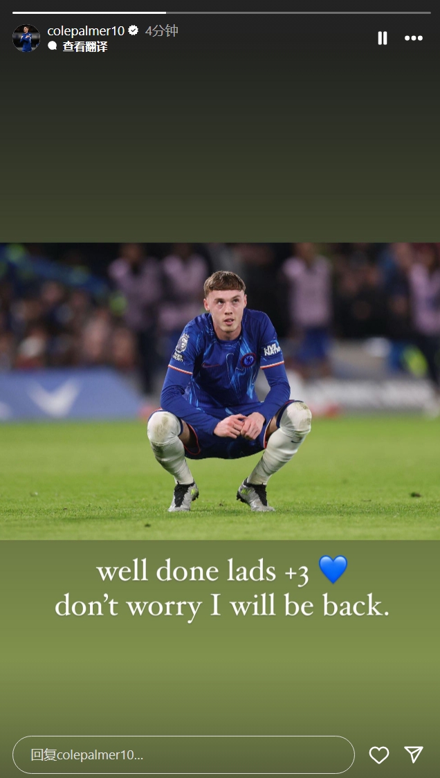 遭遇7場進(jìn)球荒,帕爾默社媒曬照:不用擔(dān)心,我會回來的