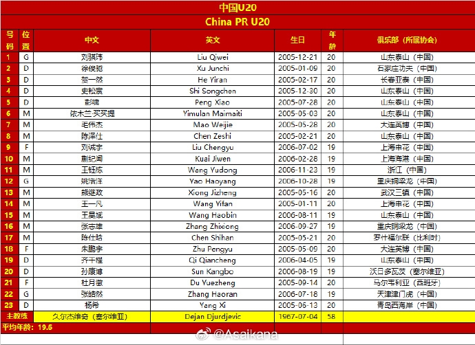 中國U20在本屆U20亞洲杯小組賽分別2-1擊敗卡塔爾、5-2吉爾吉斯斯坦,1-2澳大利亞,以小組第二出線。