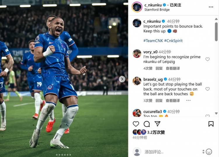 本場比賽恩昆庫傳射建功,他也在個人社媒曬出本場慶祝進(jìn)球照片,配文寫道:“拿下重要的分?jǐn)?shù)完成反彈,讓我們繼續(xù)下去!”