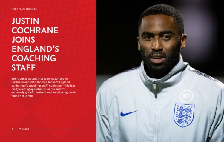 2月26日訊 布倫特福德官網(wǎng)消息,俱樂部一線隊助理教練賈斯汀-科克倫加入圖赫爾的英格蘭男足一線隊教練組??瓶藗悓⒗^續(xù)擔(dān)任布倫特福德一線隊助理教練,他自2022年7月以來一直擔(dān)任這一職位,將以雙重身份擔(dān)任這兩個角色。