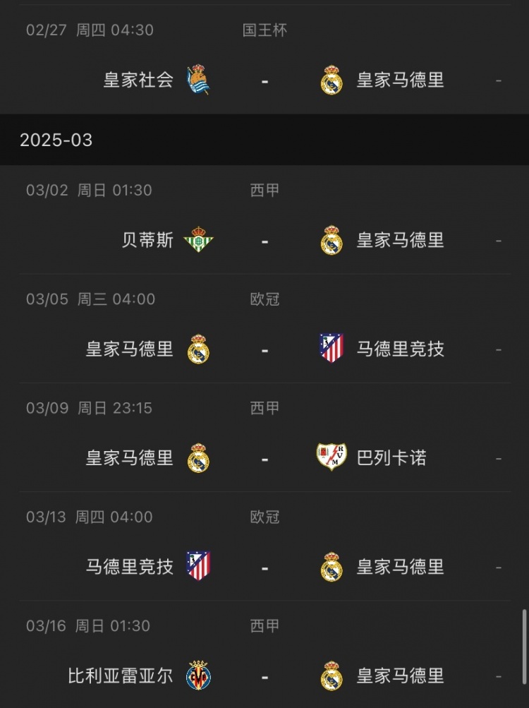 皇馬未來(lái)賽程↓